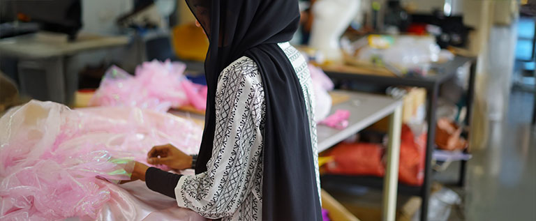 A standout element is the use of 3D pen technology to craft clothing from plastic waste, particularly marine scraps.